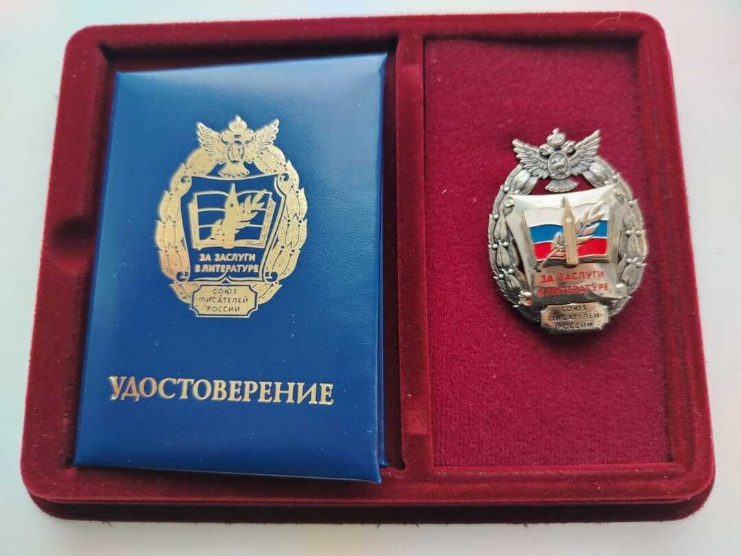 Моё творчество отмечено высшей наградой Союза писателей России медалью "За заслуги в литературе" От всей души благодарю правление Союза писателей России.